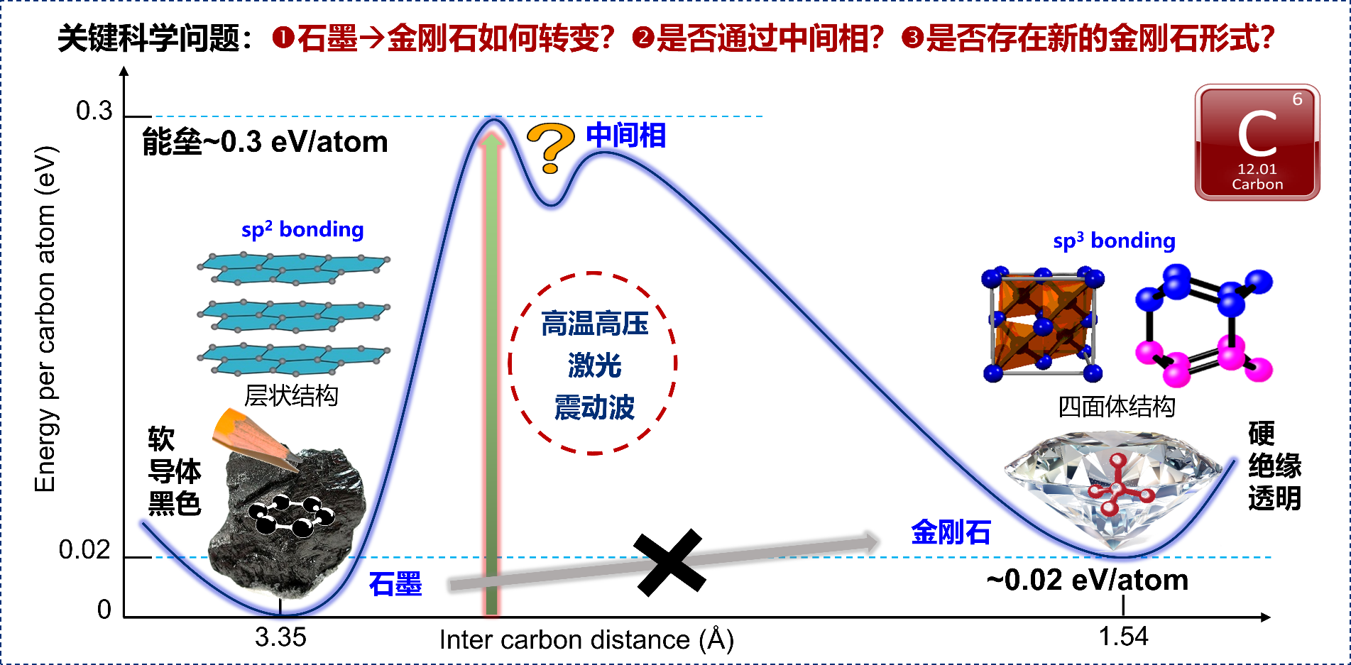 圖2 石墨向金剛石轉變的關鍵科學問題